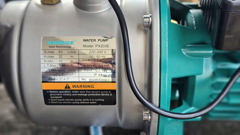 o Biến tần cho phép Shimge PX203e hoạt động với nhiều mức công suất khác nhau, tùy thuộc vào lưu lượng nước thực tế. Ví dụ: khi chỉ có một vòi nước hoạt động, máy sẽ chạy ở mức công suất thấp. Khi nhiều thiết bị sử dụng nước cùng lúc, công suất sẽ tự động tăng lên.